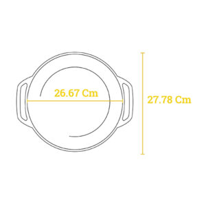 Изработен е од гусано железо со висококвалитетен емајлиран слој кој обезбедува долготрајност, рамномерна топлинска распределба и мазна површина што не реагира со храната.