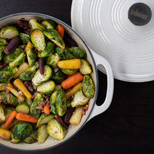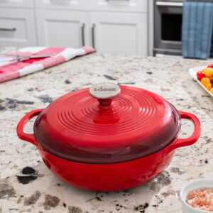 Овој сад за готвење е одличен избор за оние што сакаат комбинација од капацитет, издржливост и елегантен дизајн. Совршен е за семејни оброци, супи, печење месо и леб, подготовка на десерти.