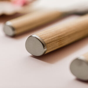 Мат црната рачка, изработена од водоотпорна пластика со додаден бамбусов прав, обезбедува пријатно чувство при држење и ја зголемува издржливоста на ножот.